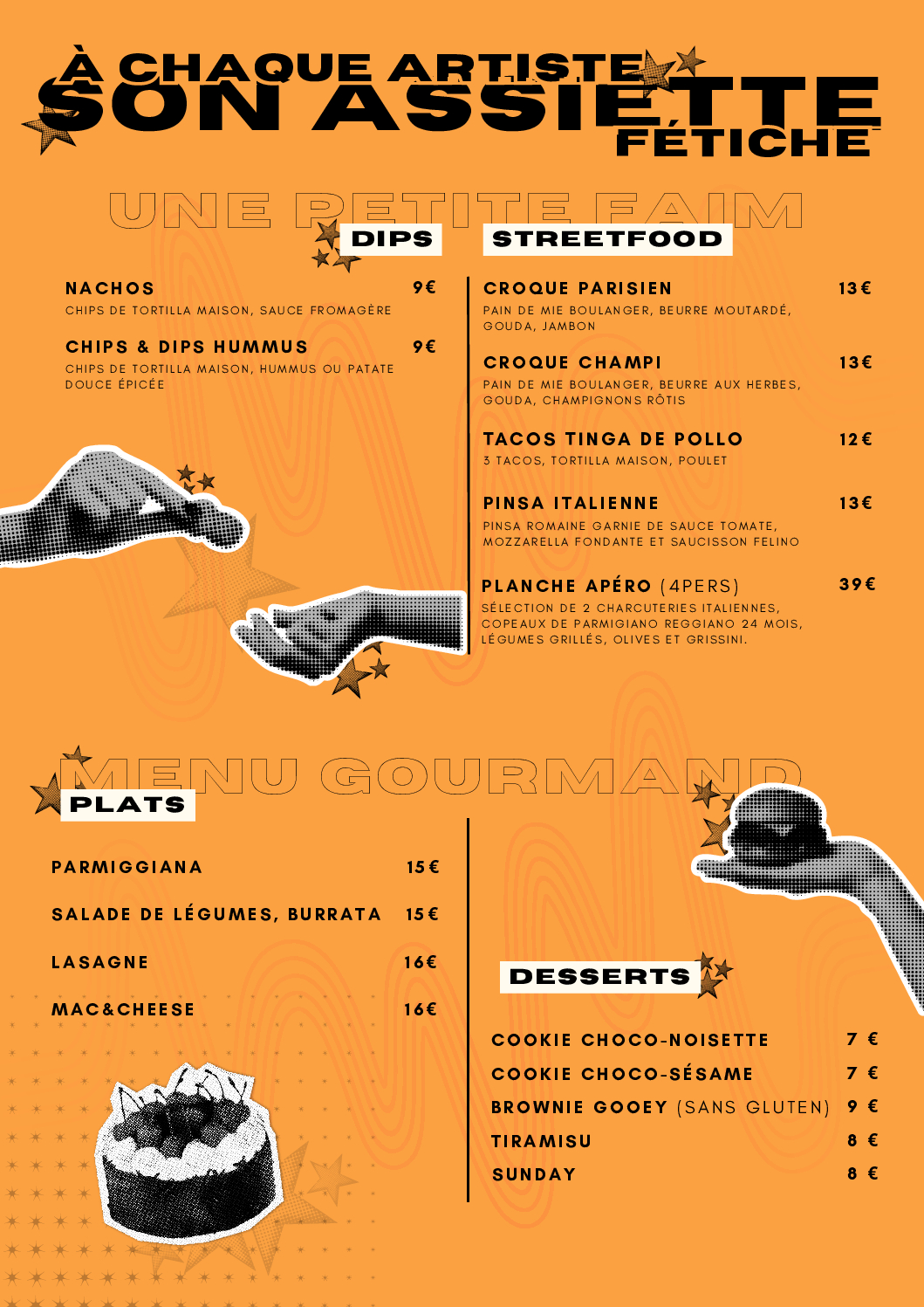 Que vous ayez une petite faim ou une envie de partager, découvrez notre sélection de plats à picorer, élaborés à partir de produits frais et de saison. De quoi régaler tous les goûts et prolonger la complicité vécue sur scène autour de la table.